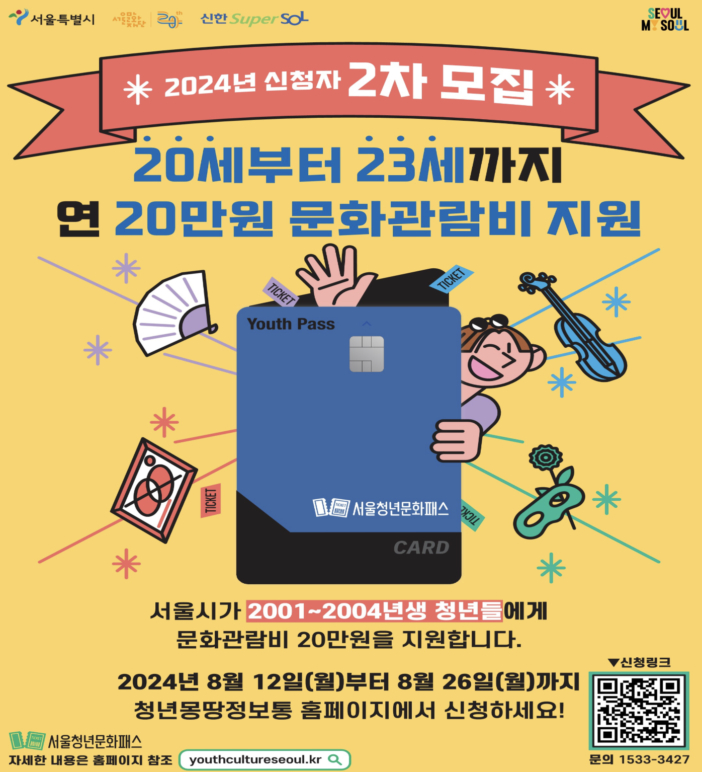 - 지원 대상: 서울시에 거주하는 20세23세 청년 (2001~2004년생).