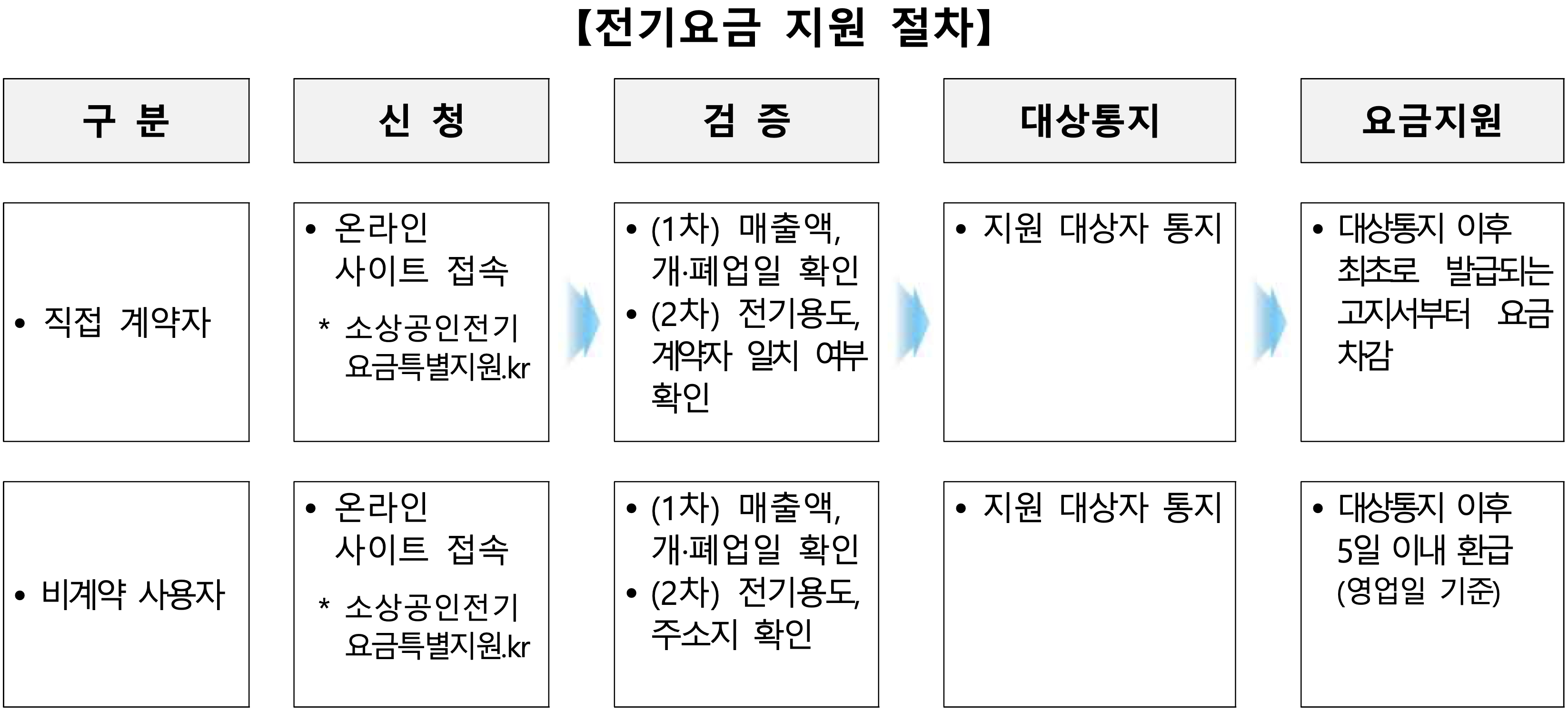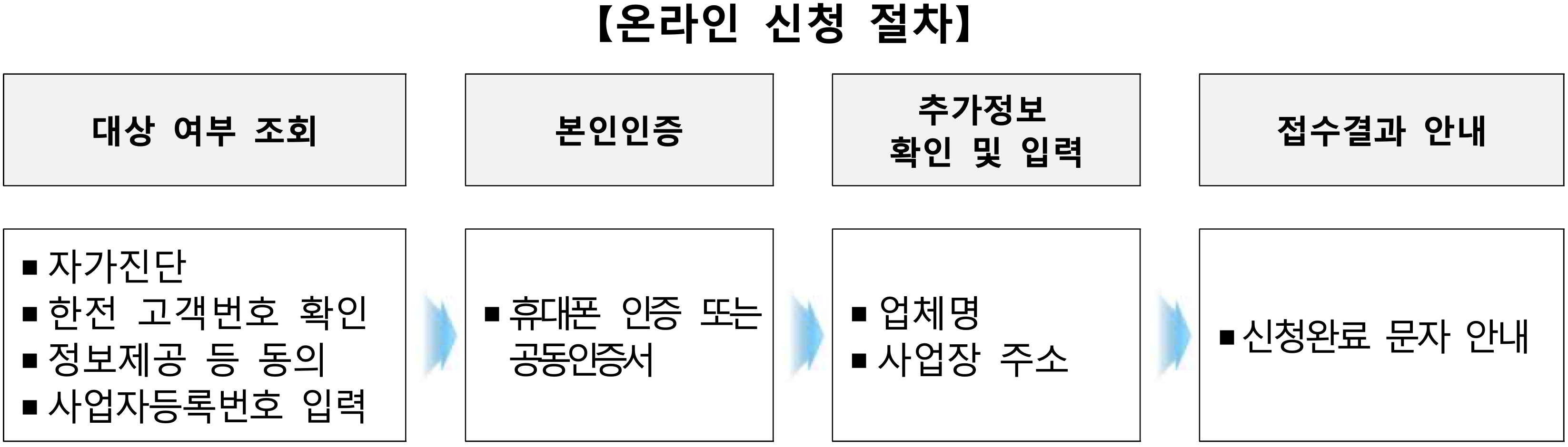 - 온라인 : 소상공인전기요금특별지원. kr에서 신청 가능.